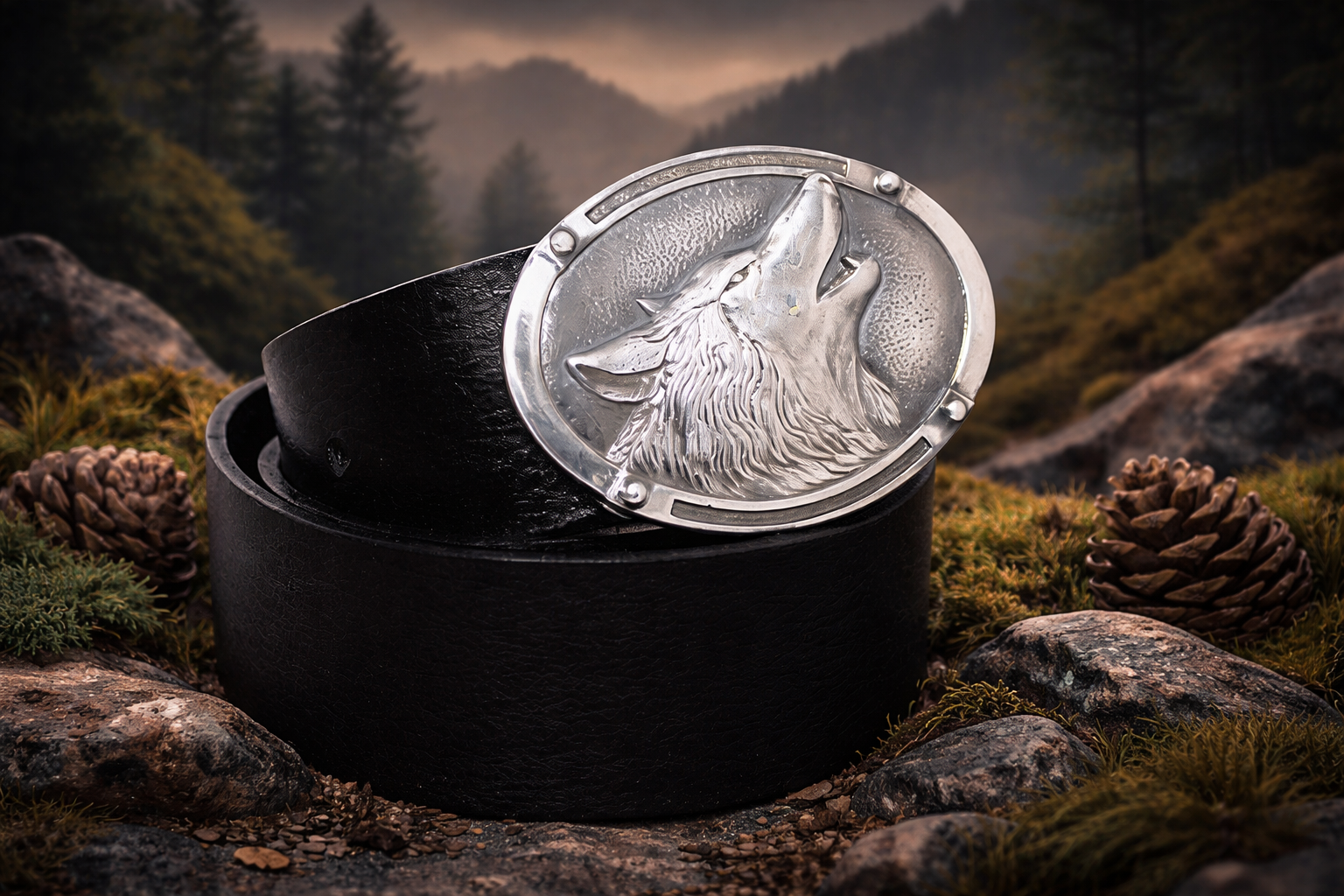 Авторский ремень с изображением волка, взгляд которого устремлен к луне, представляет собой стильный аксессуар, воплощающий силу и загадочность природы. На ремне изображен внушительный волк, который символизирует силу, независимость и дикую красоту. Его взгляд, обращенный к луне, добавляет этому изображению загадочности и таинственности. Ремень станет ярким акцентом вашего образа и подчеркнет вашу индивидуальность. Такой аксессуар отлично дополнит повседневный или кэжуал образ, придавая ему особый шарм и загадочность.
