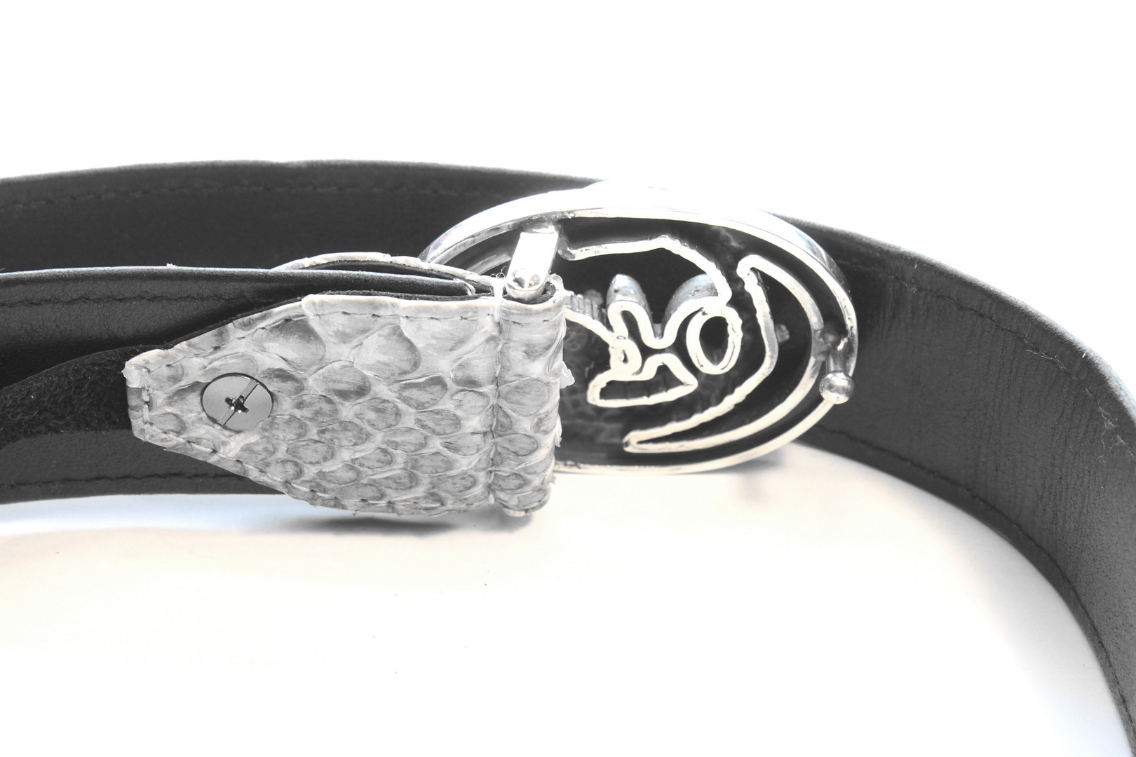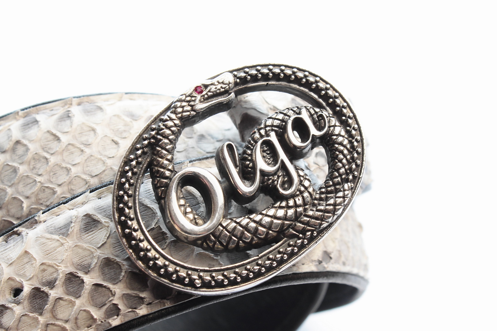 Мы можем изготовить для вас ремень с пряжкой, содержащей монограмму заказчика. Для начала нам понадобится изображение или описание монограммы, которую нужно использовать. Вы можете предоставить нам готовое изображение, и мы рассмотрим его возможность воплощения в пряжку. Если у вас нет готового изображения, то опишите, какая монограмма вам нужна, и мы создадим для вас дизайн пряжки. Далее, мы можем обсудить размер и форму пряжки, чтобы они соответствовали вашим предпочтениям и комфортно смотрелись на ремне. Кроме того, мы можем обсудить дополнительные элементы, которые вы хотите добавить к пряжке. Например, можно использовать различные отделочные материалы, такие как драгоценные камни или эмалевое покрытие, чтобы придать пряжке особую изысканность. Наконец, мы должны обсудить материал для ремня. Мы можем предложить вам различные варианты, включая натуральную кожу, экзотическую кожу или другие материалы в соответствии с вашими предпочтениями.В данном ремне использовано серебро 925 и кожа питона.